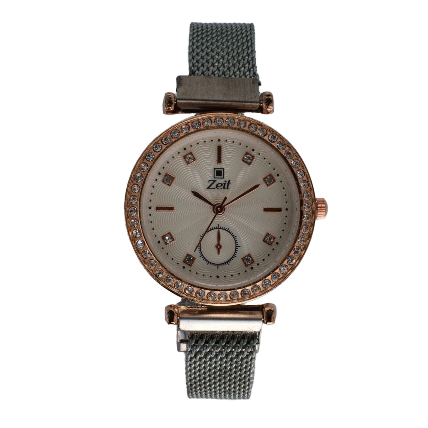 El Reloj Análogo Zeit Para Dama cuenta con extensible de Mesh, caja de Aleación y fijación de Imán.